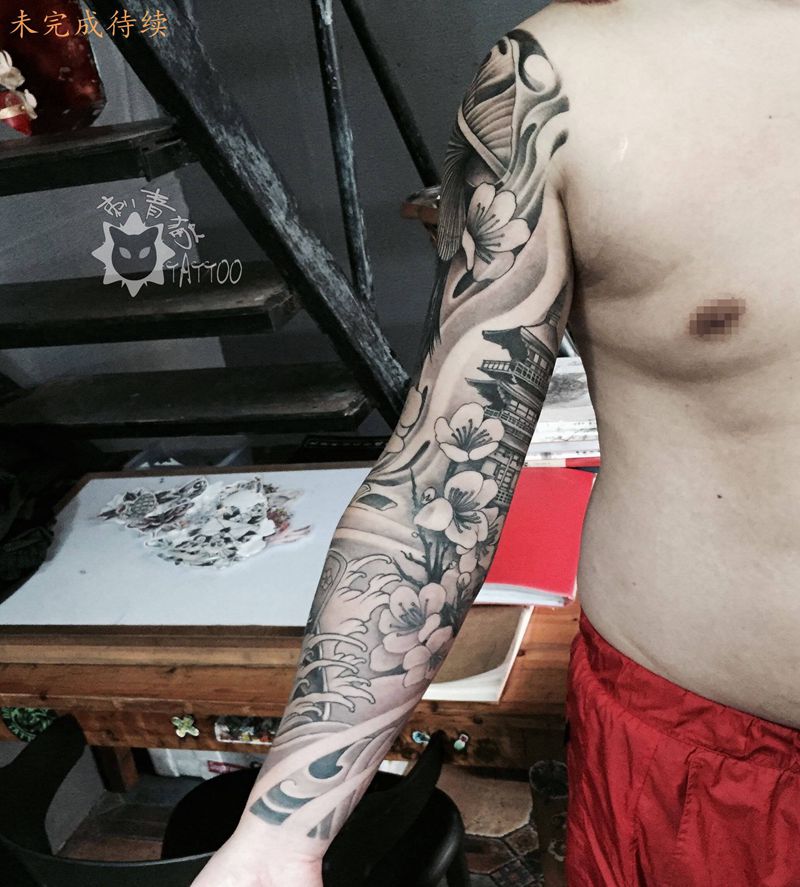 近期的一些未完成纹身图片_手部背部新传统老传统花臂满背火龙纹身图案