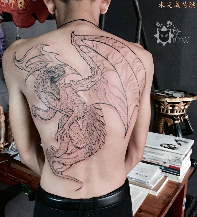 近期的一些未完成纹身图片_手部背部新传统老传统花臂满背火龙纹身图案