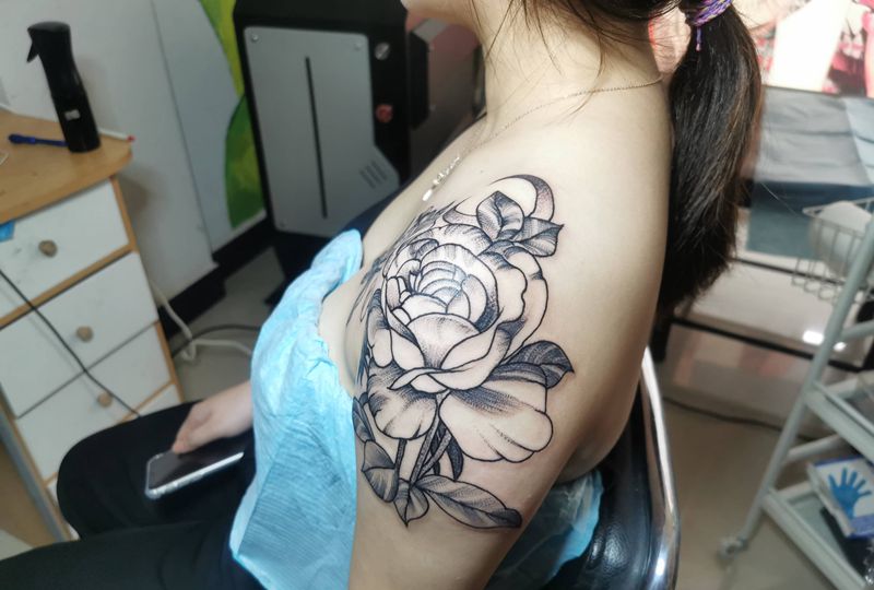 当前位置: 首页 >广西防城港市纹身店-京世纹身馆纹身图案>素花纹身图片_肩部点刺纹身图案