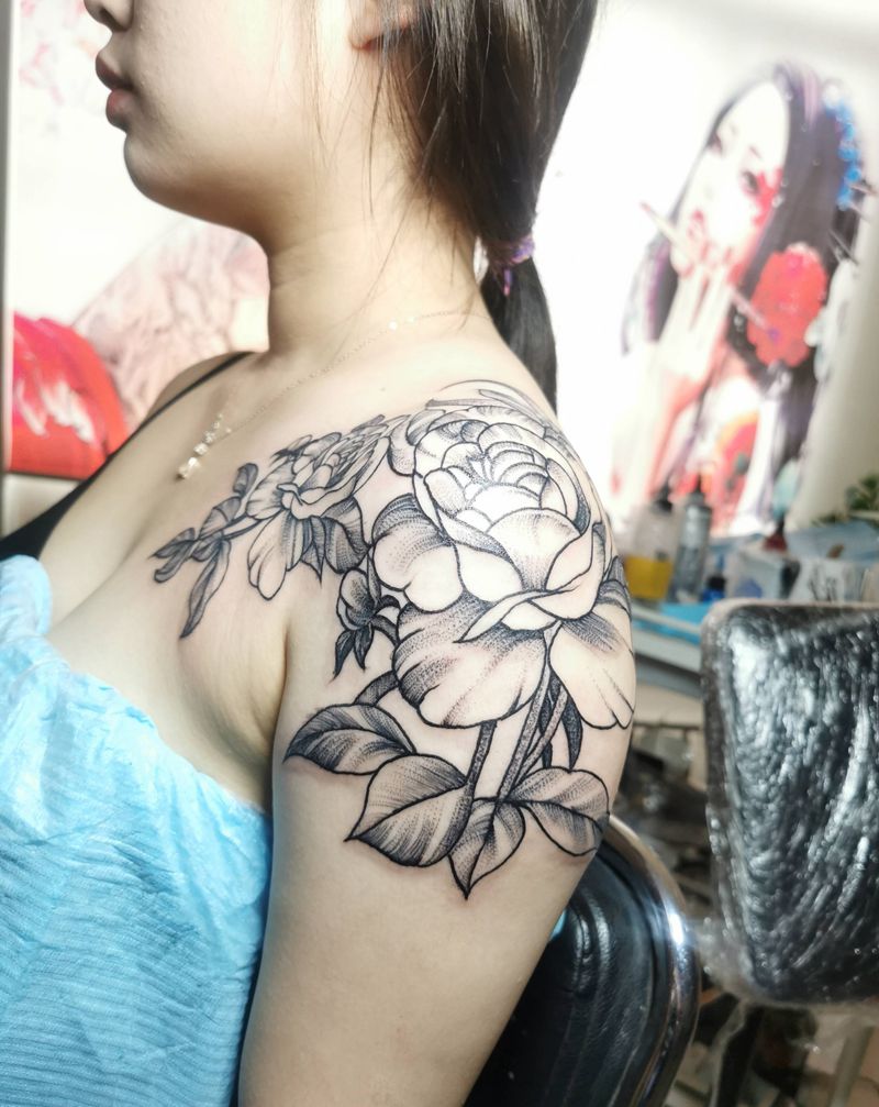 • 女性大花胸纹身_43张霸气漂亮的女性大花胸纹身图案作品