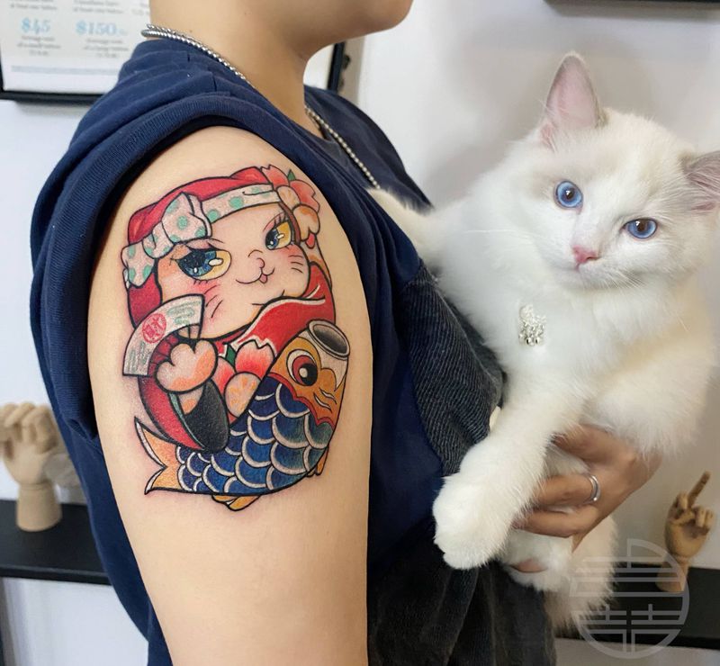 当前位置: 首页 >广西北海市纹身店-嚞刺青纹身图案>日式猫咪纹身图片_手臂纹身图案