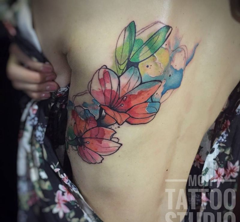 • 女性大花胸纹身_43张霸气漂亮的女性大花胸纹身图案作品