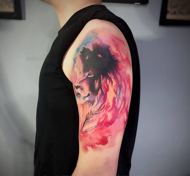 当前位置: 首页 >广西北海市纹身店-嚞刺青纹身图案>泼墨狮子遮盖纹身图片