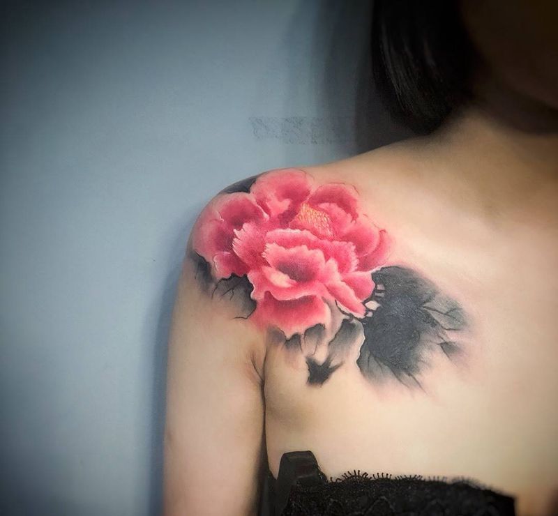 国风牡丹遮盖纹身图片