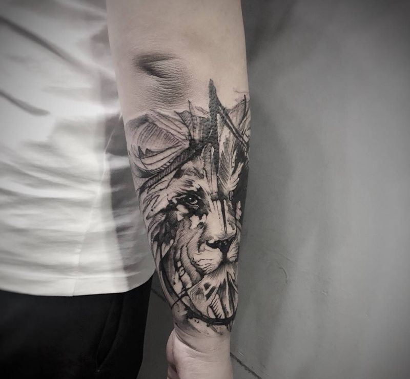 当前位置: 首页 >广西北海市纹身店-嚞刺青纹身图案>线条狮子纹身图片