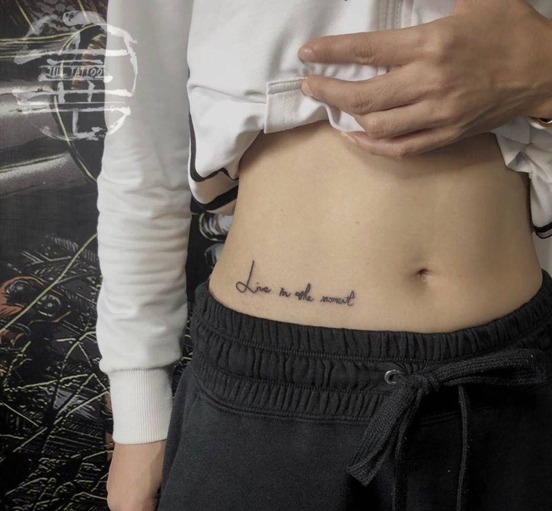 • T关于私处得爱!纹身图片_成品腹部清新字符图腾纹身图案