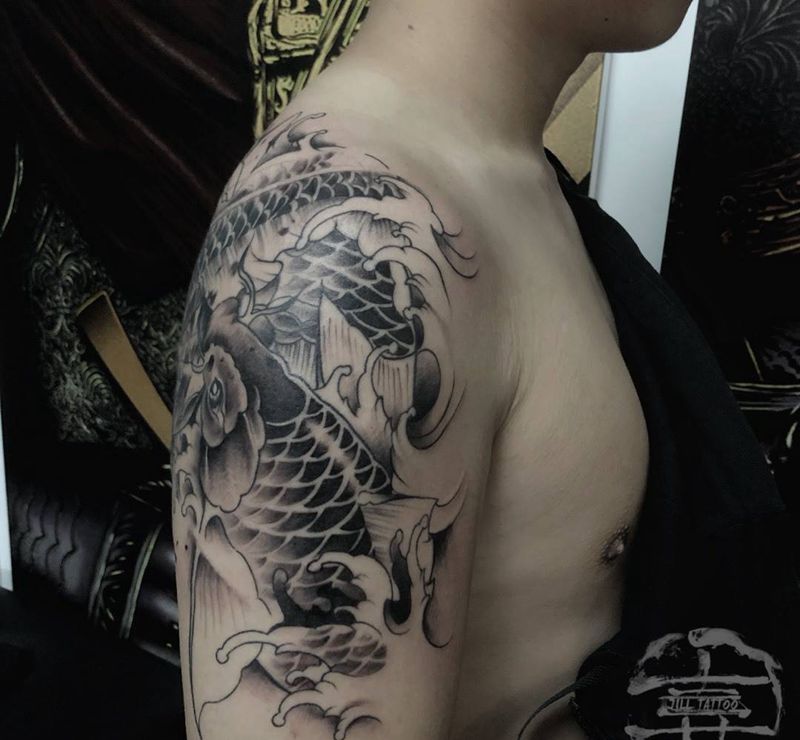 当前位置: 首页 >广西北海市纹身店-嚞刺青纹身图案>黑灰双鲤鱼纹身图片