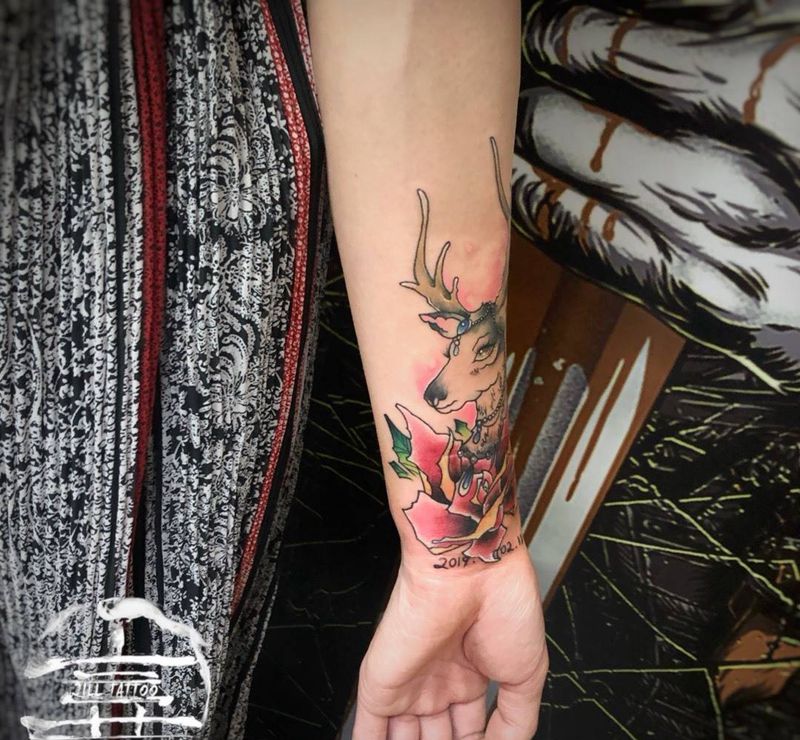 当前位置: 首页 >广西北海市纹身店-嚞刺青纹身图案>遮盖刀疤 鹿纹身图片