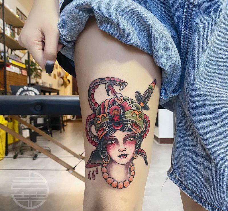 当前位置: 首页 >广西北海市纹身店-嚞刺青纹身图案>蛇女纹身图片_腿部纹身图案