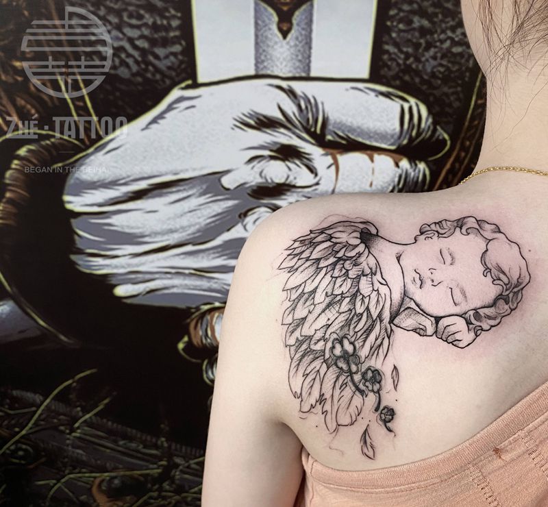 当前位置: 首页 >广西北海市纹身店-嚞刺青纹身图案>旧图添加 天使纹身图片_肩部纹身图案