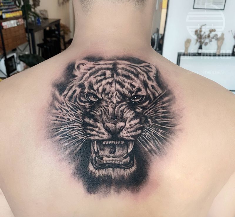 当前位置: 首页 >广西北海市纹身店-嚞刺青纹身图案>写实老虎纹身图片_背部欧美写实纹身图案