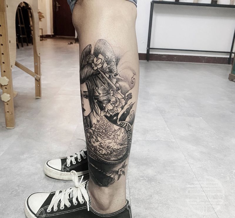 艺妓遮盖纹身图片_脚部纹身图案