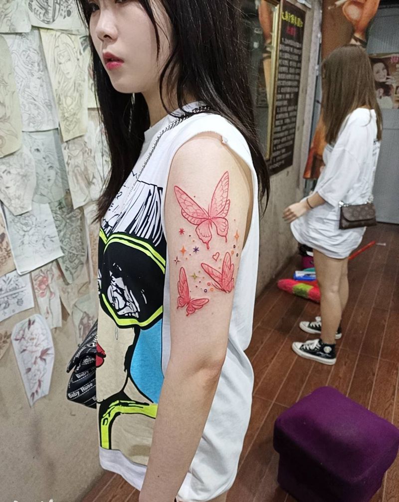 当前位置: 首页 >广西防城港市纹身店-姐弟纹身纹身图案>红蝴蝶纹身图片_手臂纹身图案