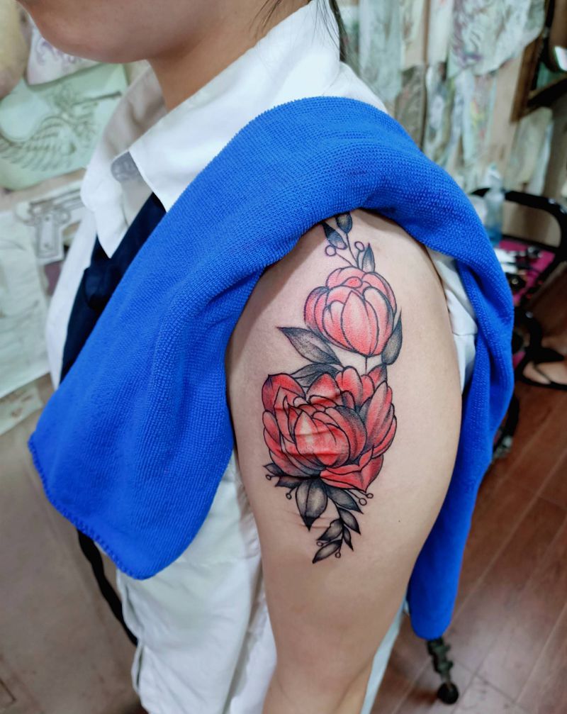 • 女性大花胸纹身_43张霸气漂亮的女性大花胸纹身图案作品