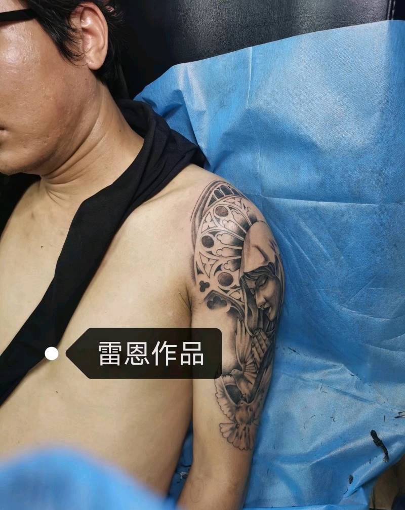 当前位置: 首页 >广西北海市纹身店-雷恩刺青店纹身图案>圣母纹身图片_手臂欧美写实纹身图案