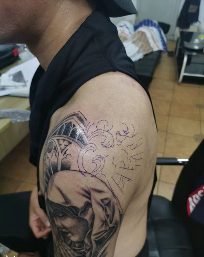 当前位置: 首页 >广西北海市纹身店-雷恩刺青店纹身图案>圣母纹身图片_手臂纹身图案