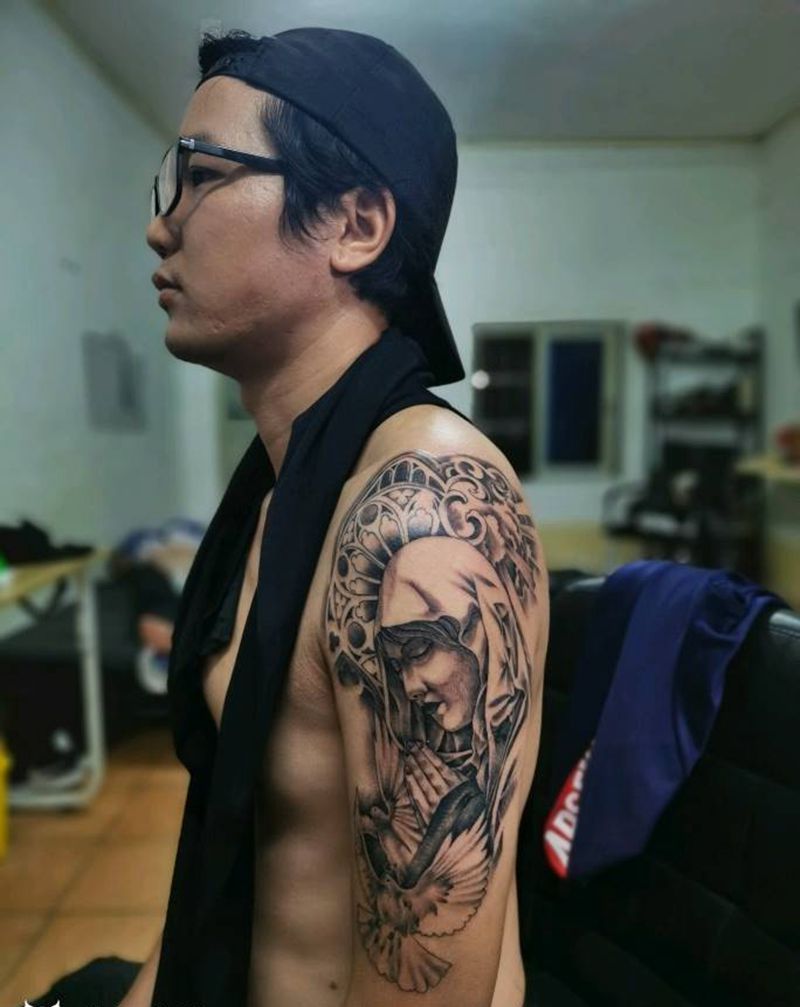 当前位置: 首页 >广西北海市纹身店-雷恩刺青店纹身图案>圣母纹身图片_手臂纹身图案