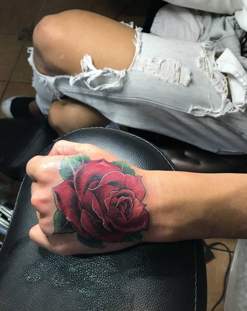 • 手背潮流时尚的玫瑰花眼睛纹身图案