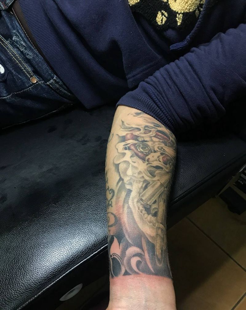 当前位置: 首页 >广西北海市纹身店-雷恩刺青店纹身图案>手臂添加纹身图片_成品手臂欧美肖像写实几何纹身图案