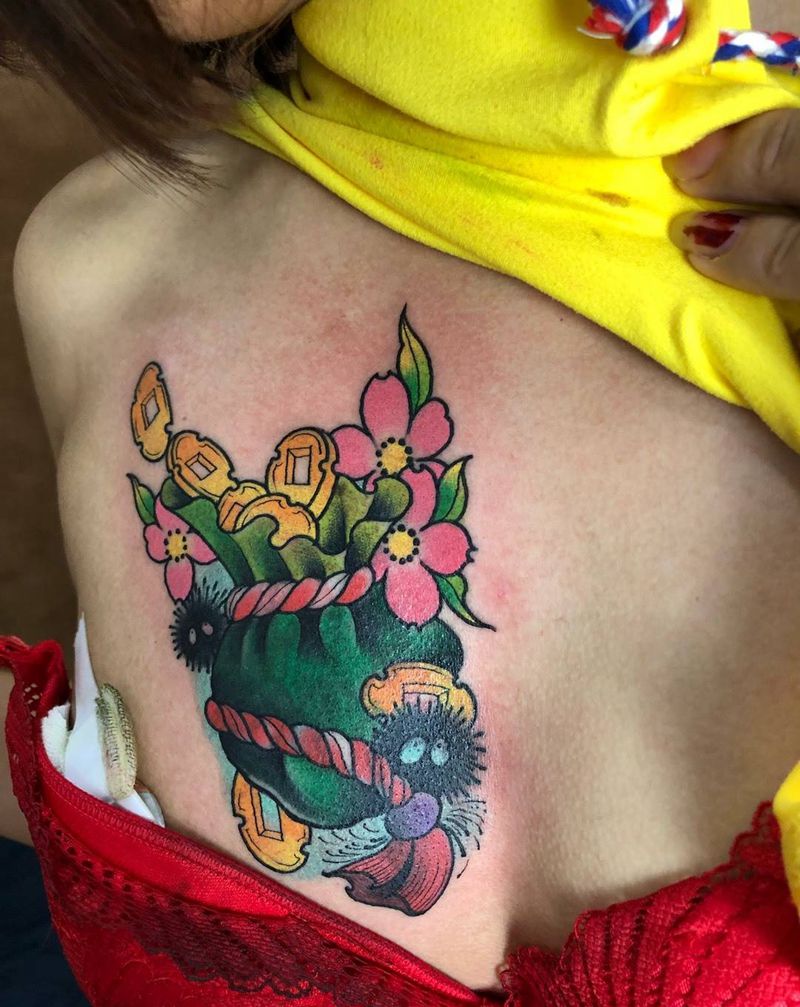 • 女性大花胸纹身_43张霸气漂亮的女性大花胸纹身图案作品
