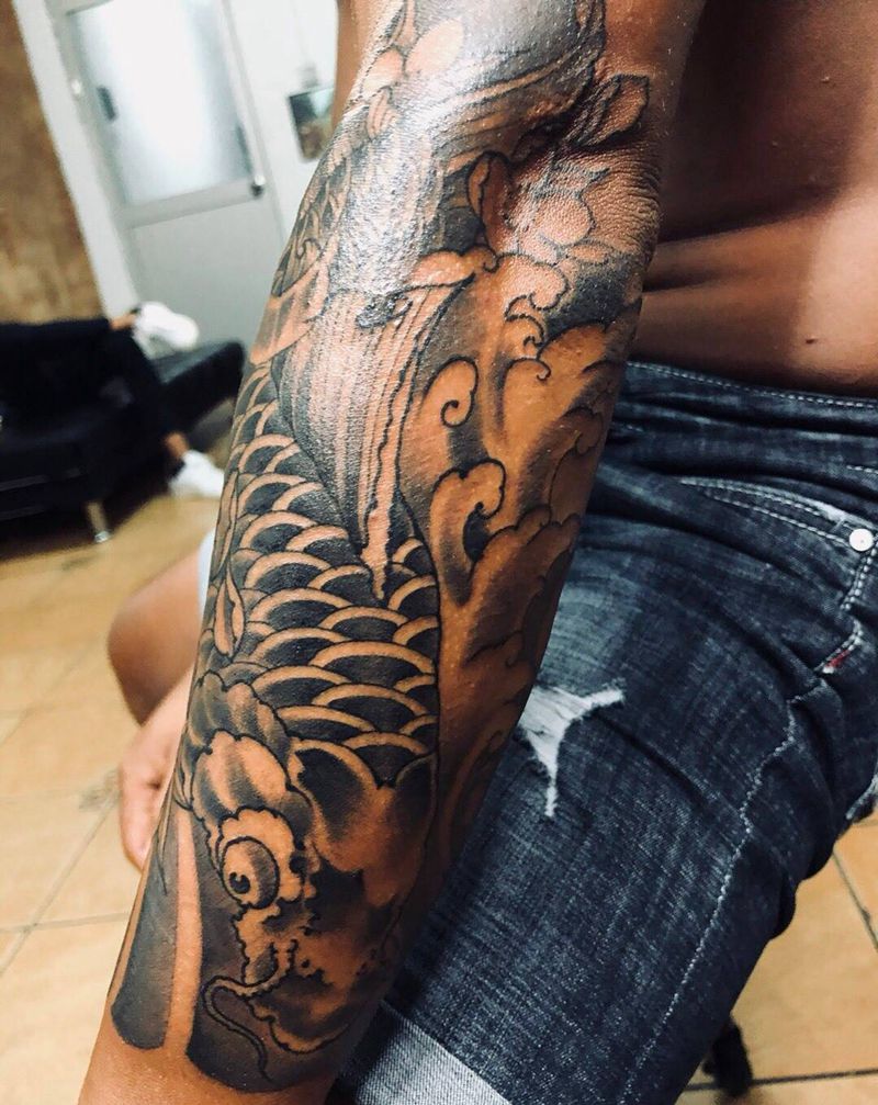 鲤鱼花臂纹身图片