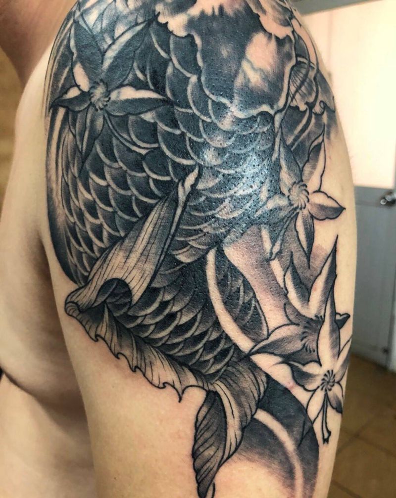 当前位置: 首页 >广西北海市纹身店-雷恩刺青店纹身图案>鲤鱼纹身遮盖纹身图片