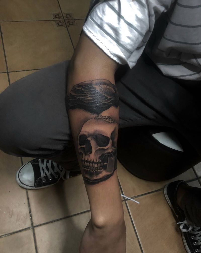 当前位置: 首页 >广西北海市纹身店-雷恩刺青店纹身图案>骷髅头纹身敢死队纹身纹身图片_手臂纹身图案