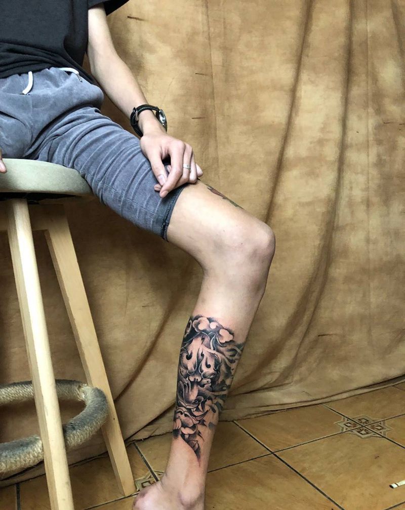 • T网红王老大花腿龙纹身图片_腿部新传统纹身图案