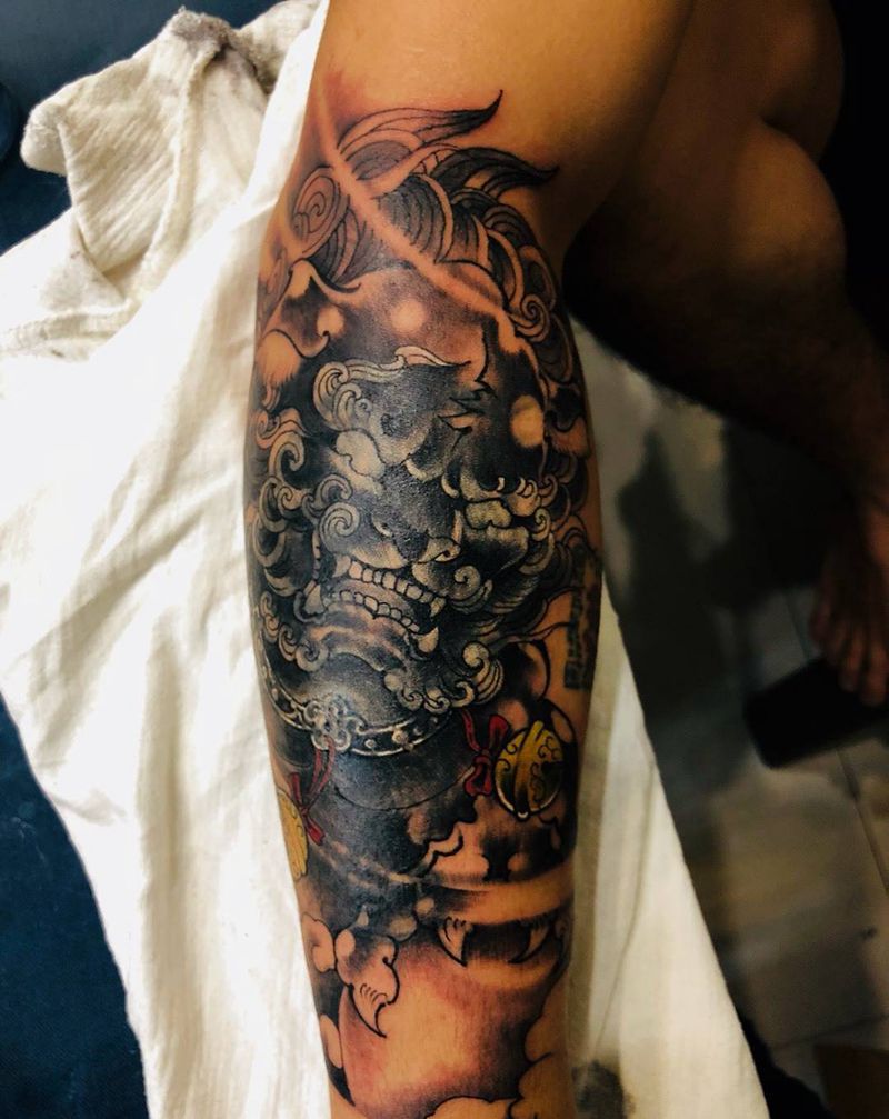 当前位置: 首页 >广西北海市纹身店-雷恩刺青店纹身图案>唐狮纹身纹身图片