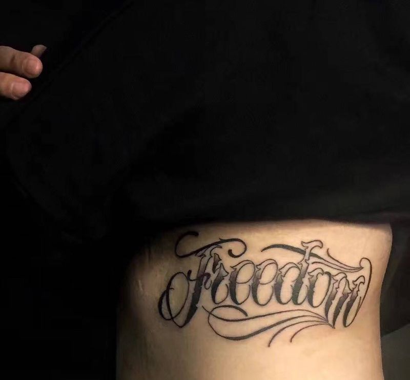 • T关于私处得爱!纹身图片_成品腹部清新字符图腾纹身图案