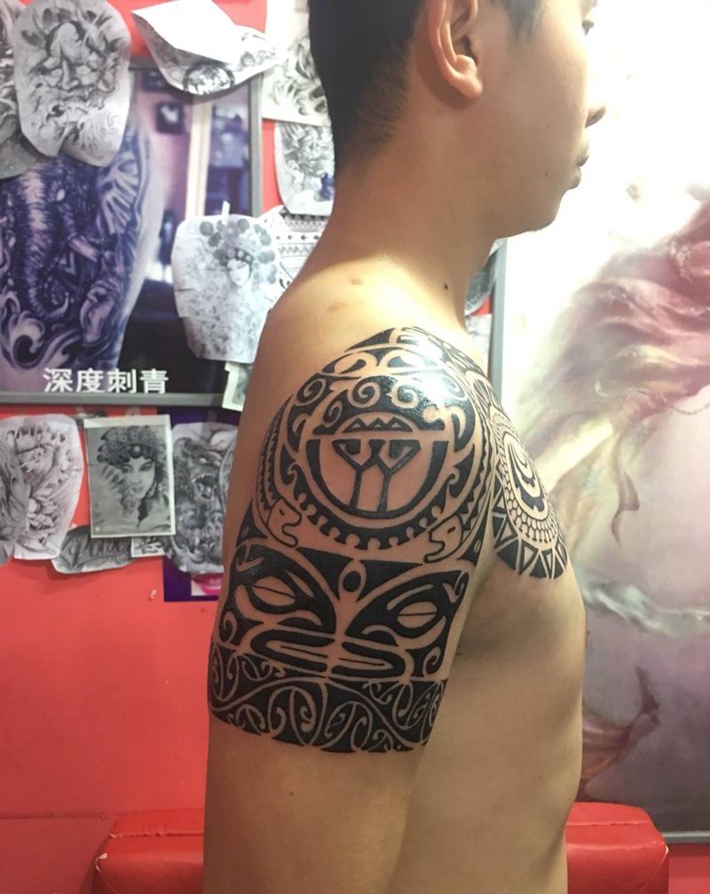 • 纹身吧推荐的披肩图腾半胛纹身图案作品展示