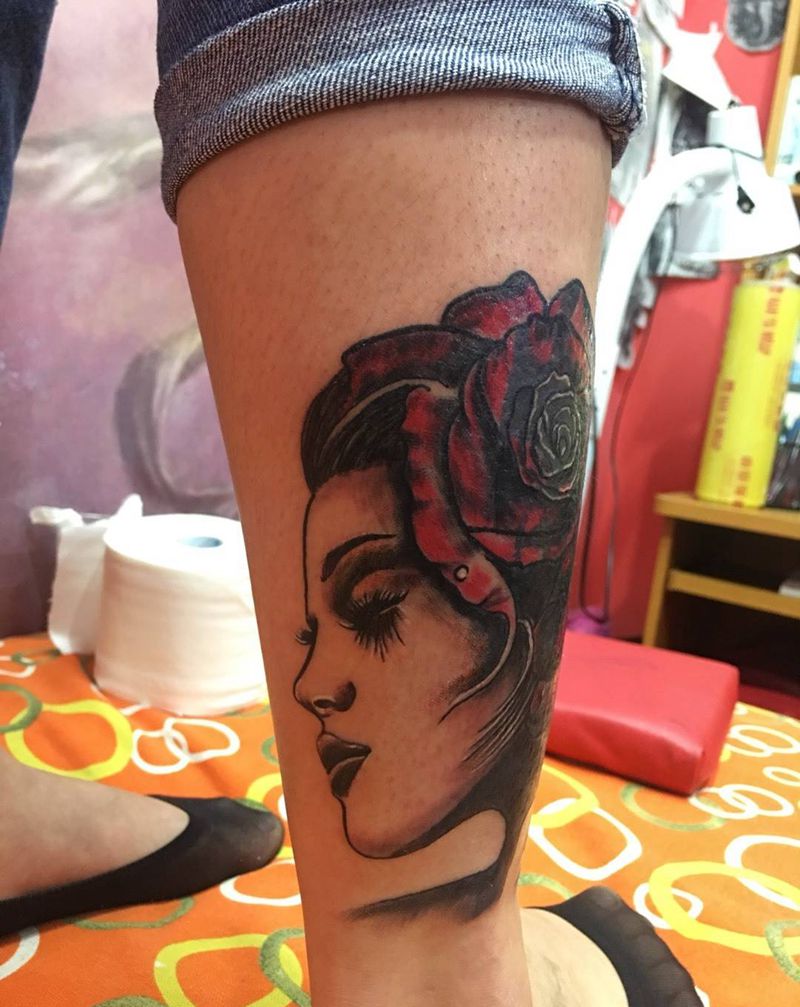 • T包小腿吹火男+阿多福纹身图片_腿部老传统新传统吹火男阿