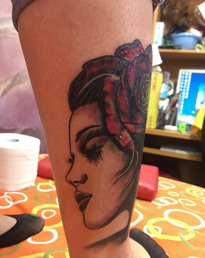 • T包小腿吹火男+阿多福纹身图片_腿部老传统新传统吹火男阿