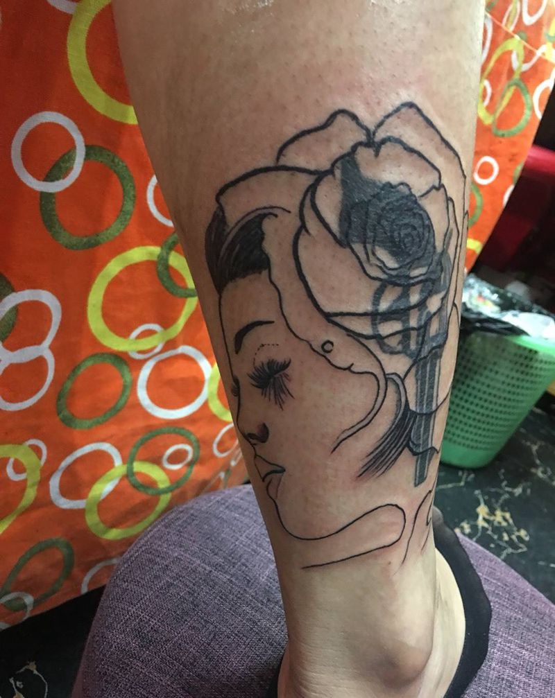 • T包小腿吹火男+阿多福纹身图片_腿部老传统新传统吹火男阿