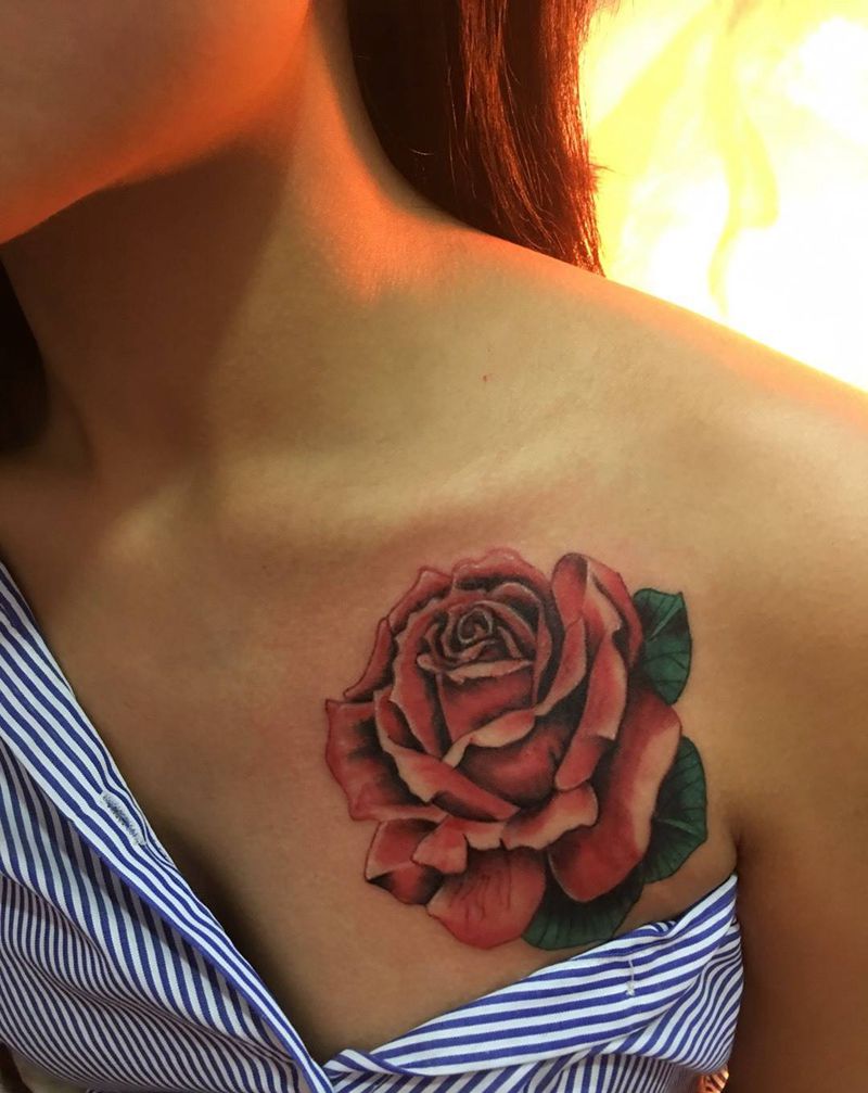 • 女性大花胸纹身_43张霸气漂亮的女性大花胸纹身图案作品