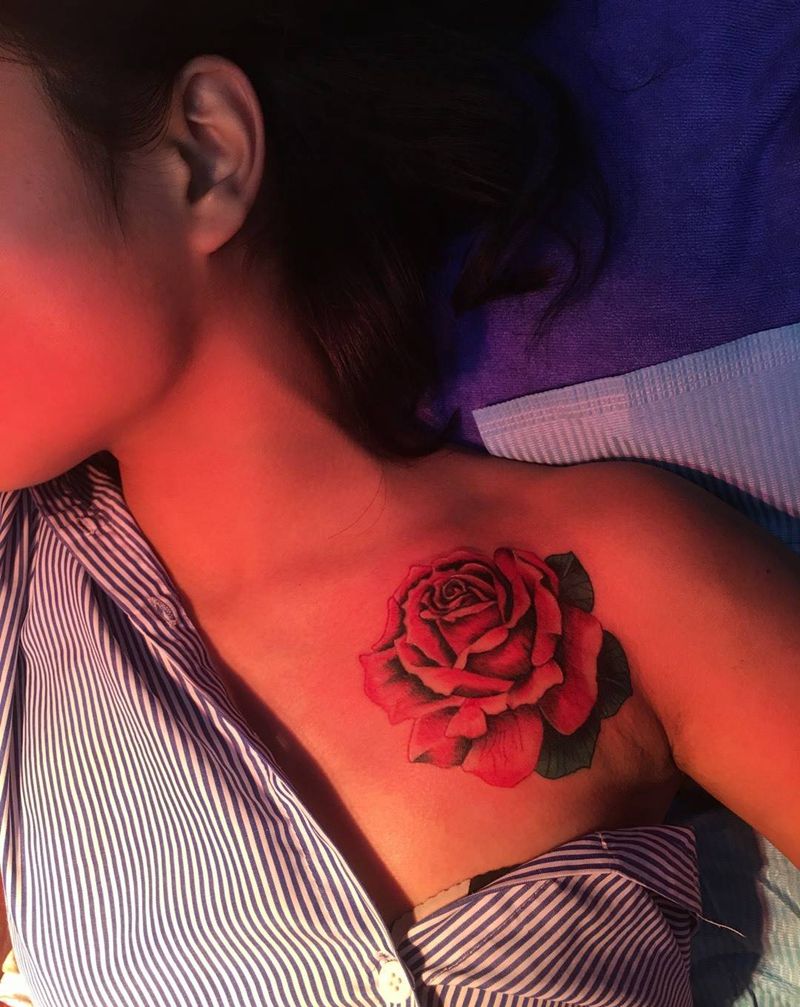 • 女性大花胸纹身_43张霸气漂亮的女性大花胸纹身图案作品