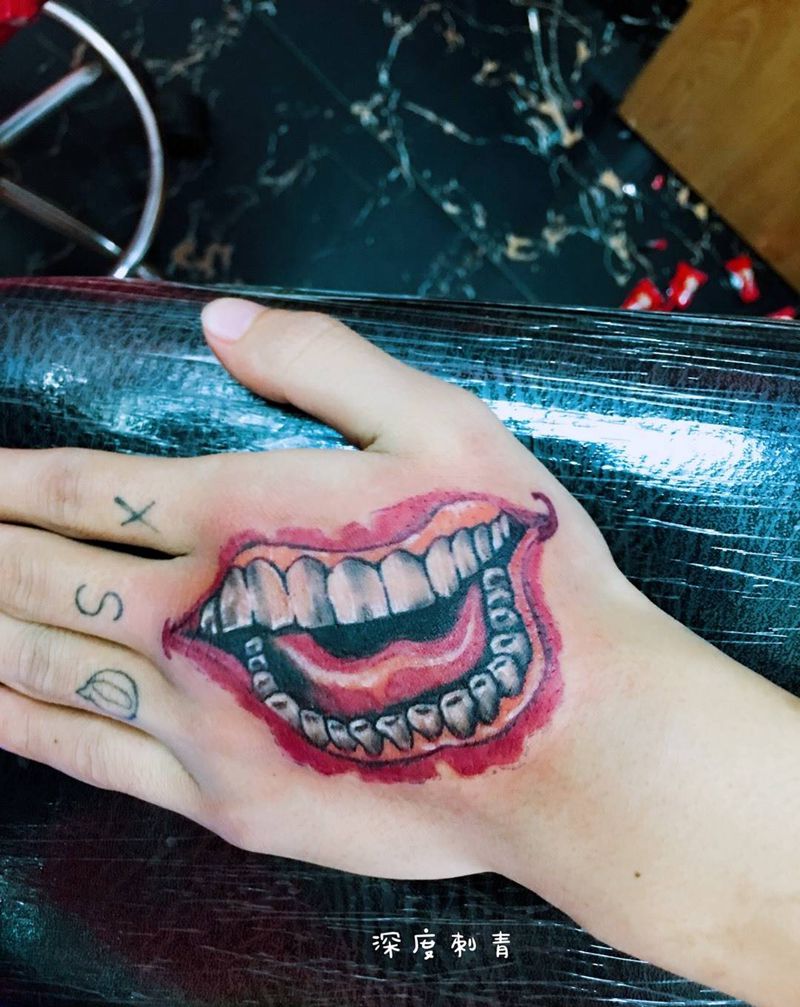 当前位置: 首页 >广西贵港市纹身店-深度刺青纹身图案>小丑的大嘴巴纹身图片