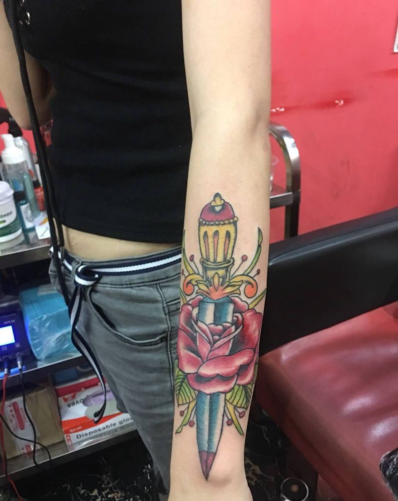 当前位置: 首页 >广西贵港市纹身店-深度刺青纹身图案>玫瑰剑纹身图片