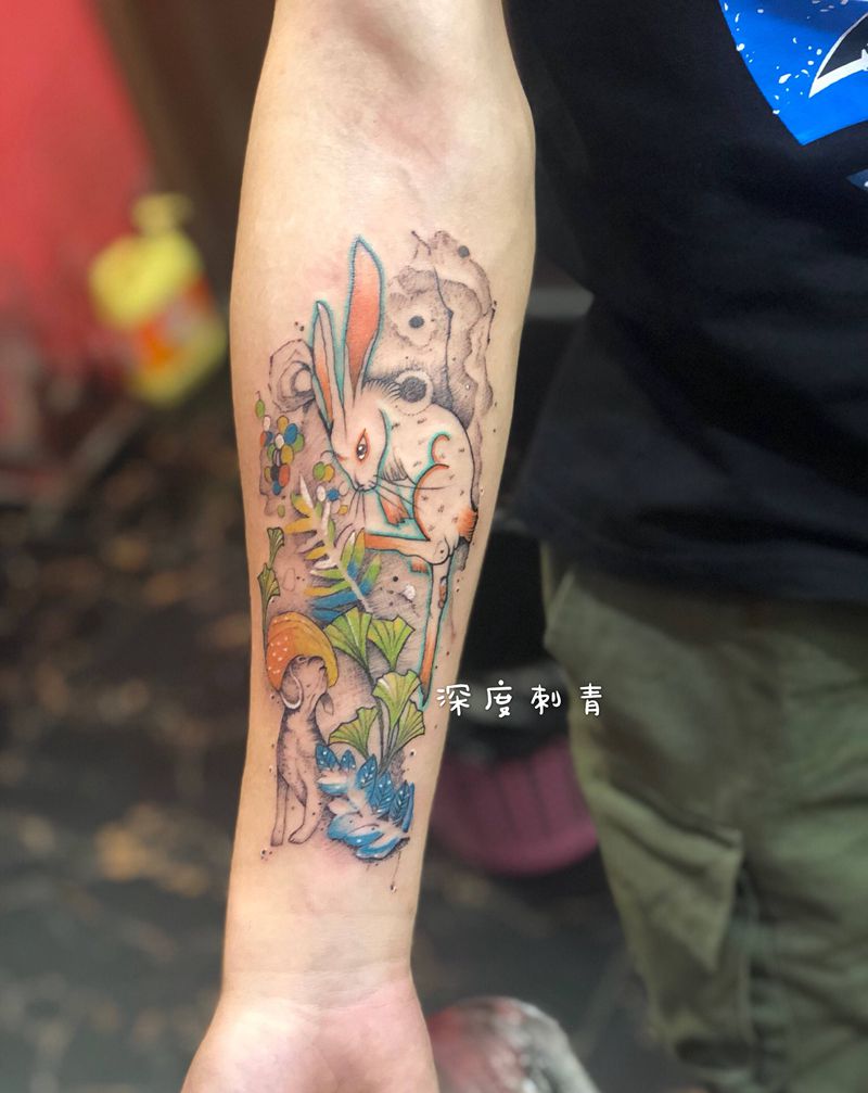 当前位置: 首页 >广西贵港市纹身店-深度刺青纹身图案>点刺与水彩纹身图片_手臂纹身图案