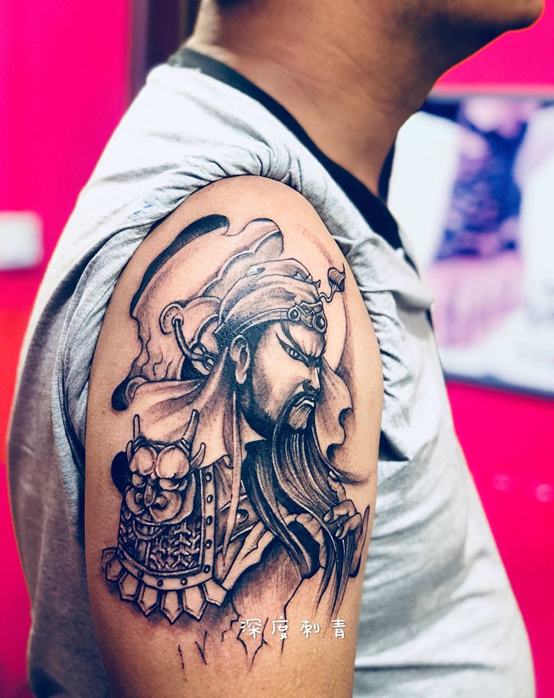 当前位置: 首页 >广西贵港市纹身店-深度刺青纹身图案>关公纹身图片_手臂纹身图案
