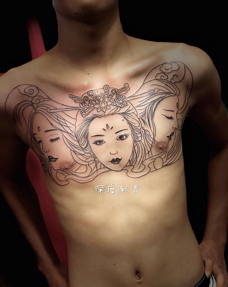 • 男性大花胸_42张优秀的男性大花胸纹身图案图片
