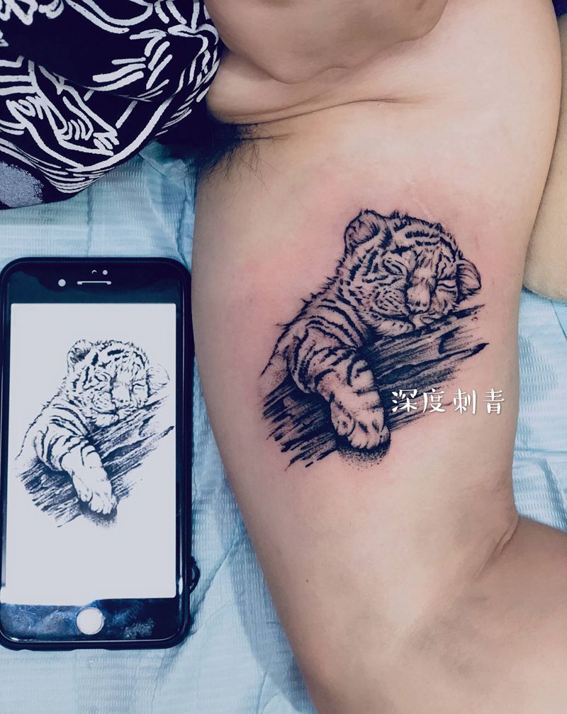 当前位置: 首页 >广西贵港市纹身店-深度刺青纹身图案>呆萌的小老虎纹身图片_手部欧美写实纹身图案