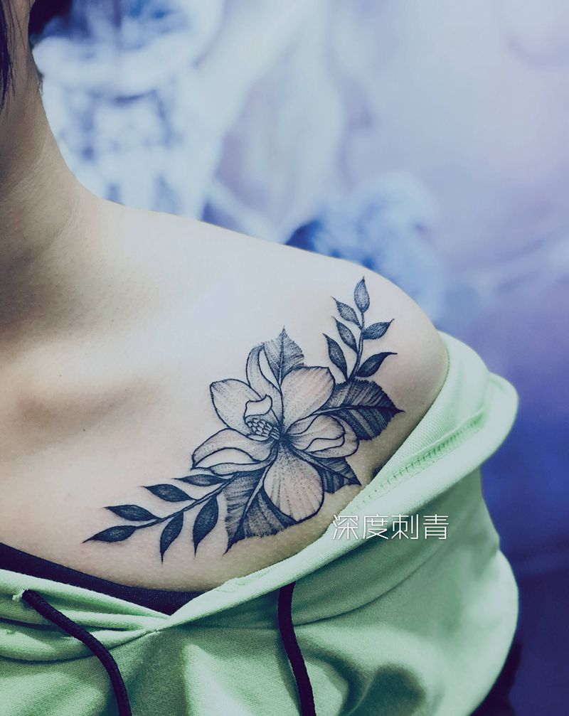 • 女性大花胸纹身_43张霸气漂亮的女性大花胸纹身图案作品