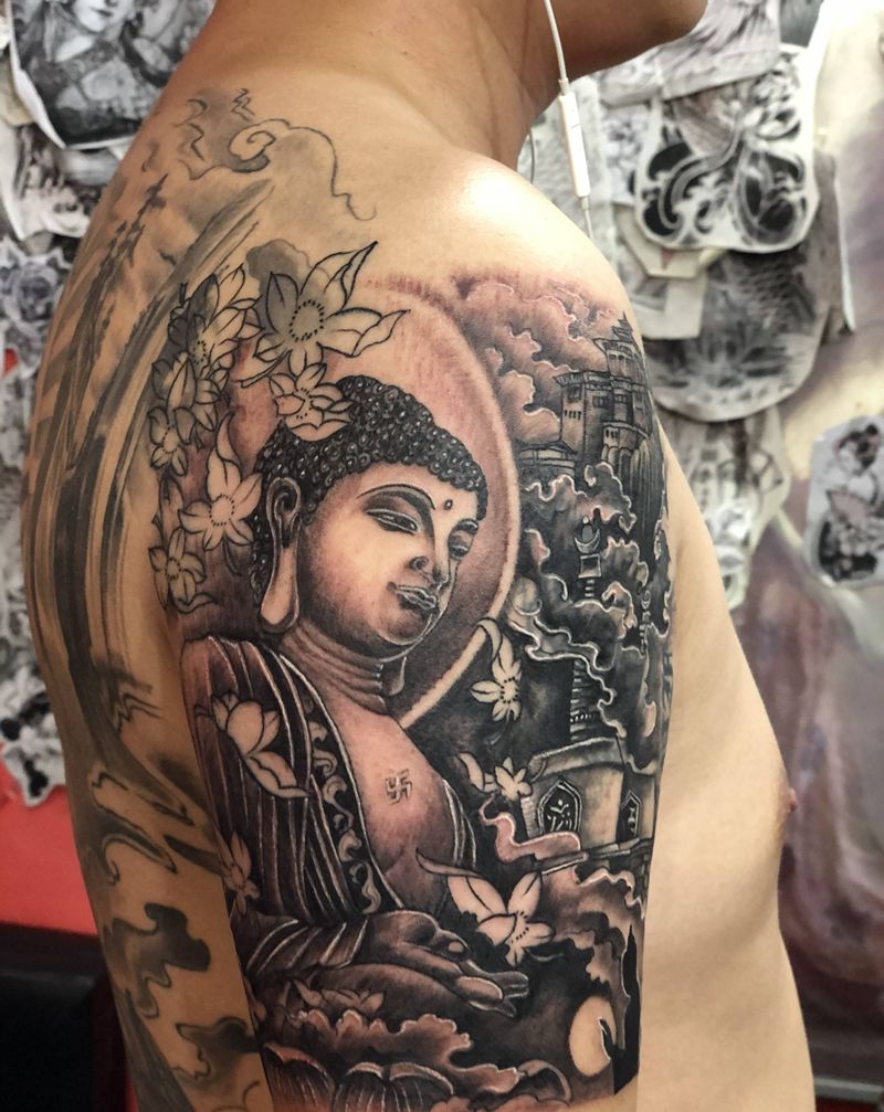佛遮盖旧纹身纹身图片_手臂纹身图案