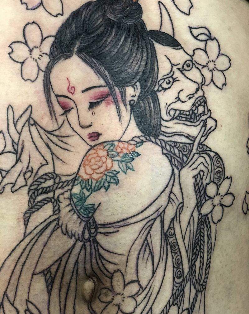 当前位置: 首页 >广西贵港市纹身店-深度刺青纹身图案>美人与般若纹身图片_腹部纹身图案