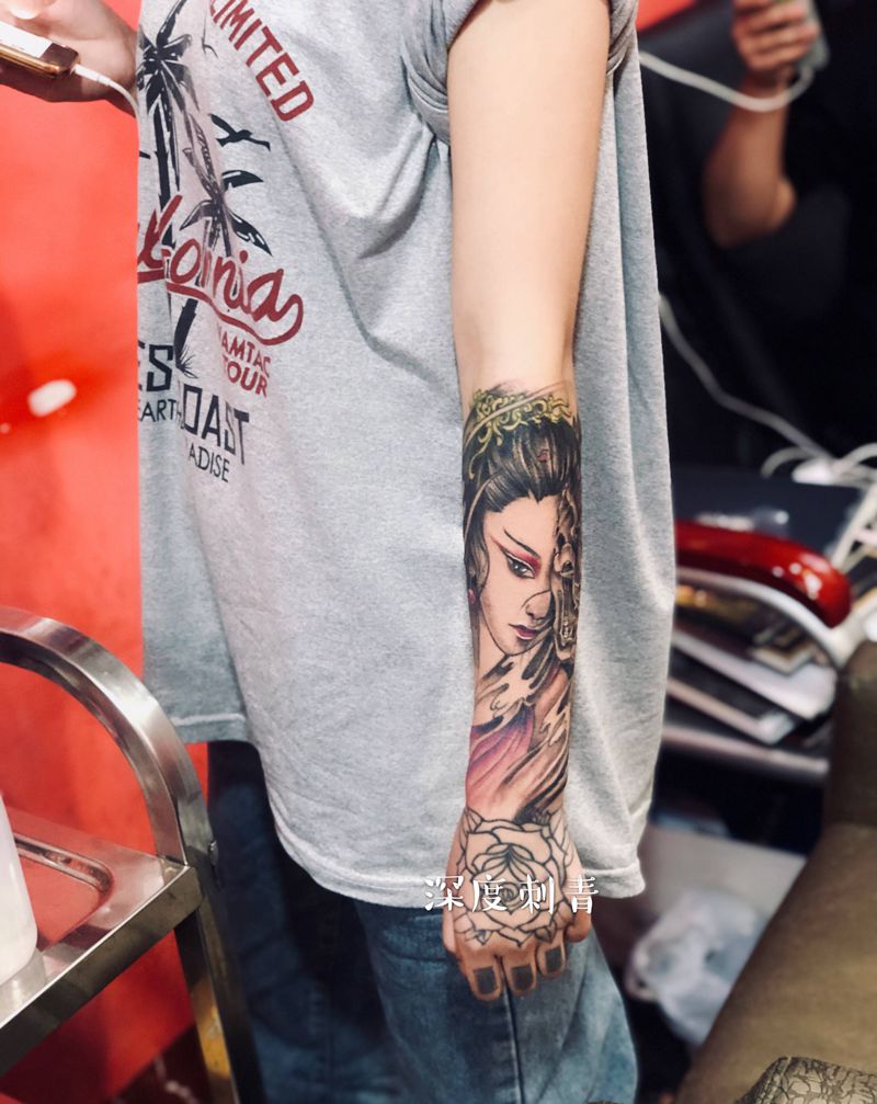 当前位置: 首页 >广西贵港市纹身店-深度刺青纹身图案>艺妓纹身图片_手臂新传统纹身图案