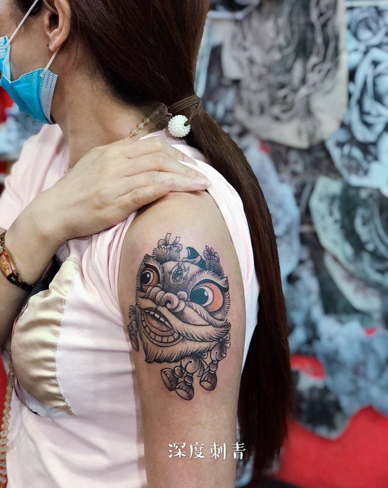 当前位置: 首页 >广西贵港市纹身店-深度刺青纹身图案>舞狮纹身图片_手臂新传统纹身图案