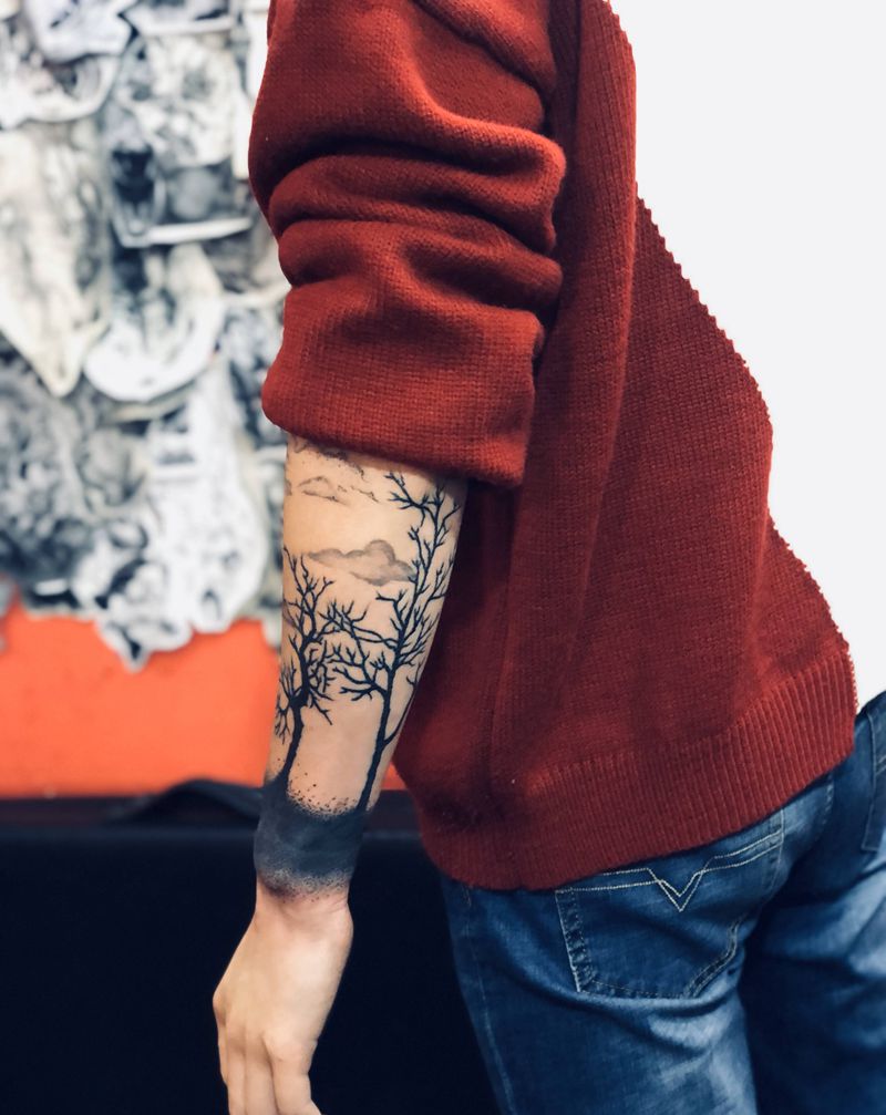 当前位置: 首页 >广西贵港市纹身店-深度刺青纹身图案>小树林纹身图片_手臂手部纹身图案