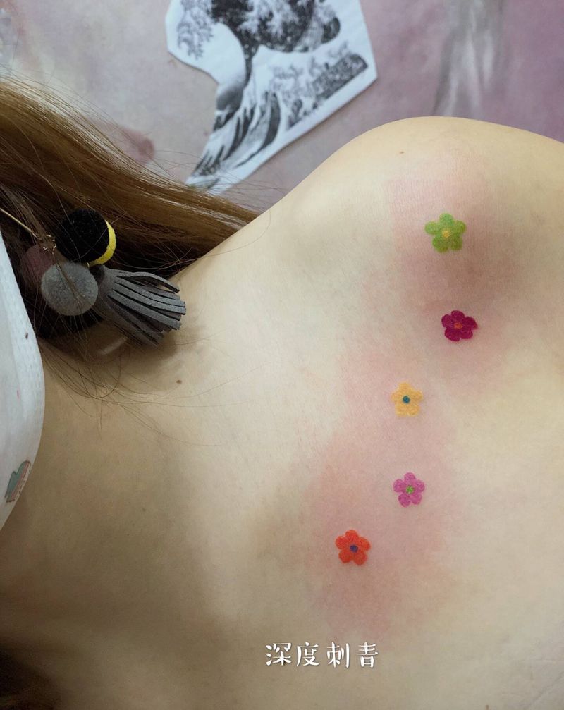 x小清新纹身图片_胸部水彩纹身图案