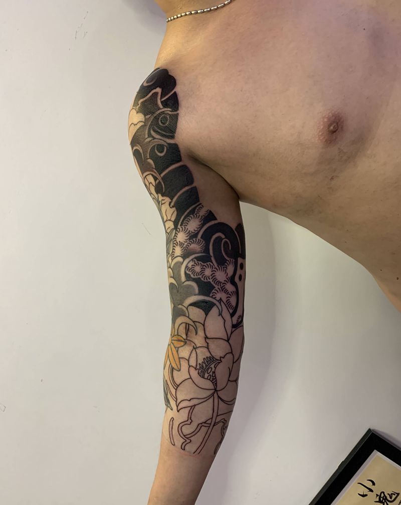 鲤鱼荷花纹身图片_手臂老传统纹身图案